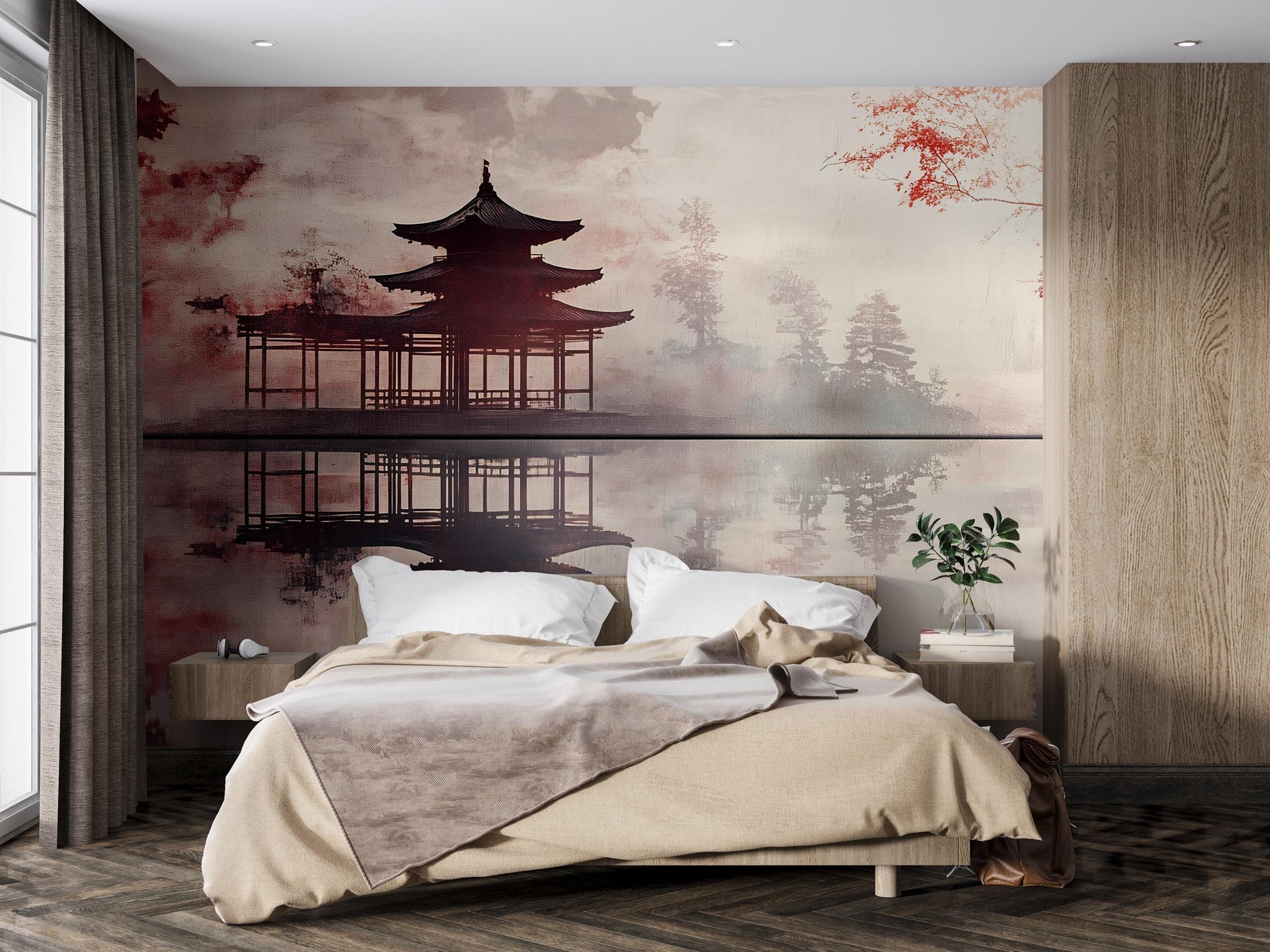 Add timeless beauty and balance to your decor with this Japanese-inspired temple landscape mural.